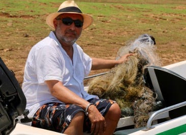 I decided to remove as much plastic netting as possible that afternoon. It was hard and pitiless work in hot and humid conditions. After approximately three hours, the boat was full, and we decided to take the netting on shore. As we reached the riverbank, fishermen were bringing in sacksful of nets for that night’s fishing. I offered Ajaya some extra money to dispose of the netting we had collected. He wiggled his head and thanked me in response.