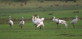 There are over 250 species of birds, with threatened species including the white Ibis, darters, and red-headed vulture, and endemic species such as the blue-winged parakeet, Malabar Grey Hornbill, Malabar Lark, Malabar Tragon, and the white-bellied Treepie, perhaps the most beautiful bird of the crow family. Flocks of spoonbills frolic on the riverside. Spread over 55 acres, this part of the forest used to be a royal lodge, a venue for Maharajas and Viceroys to indulge in their hunting passions.